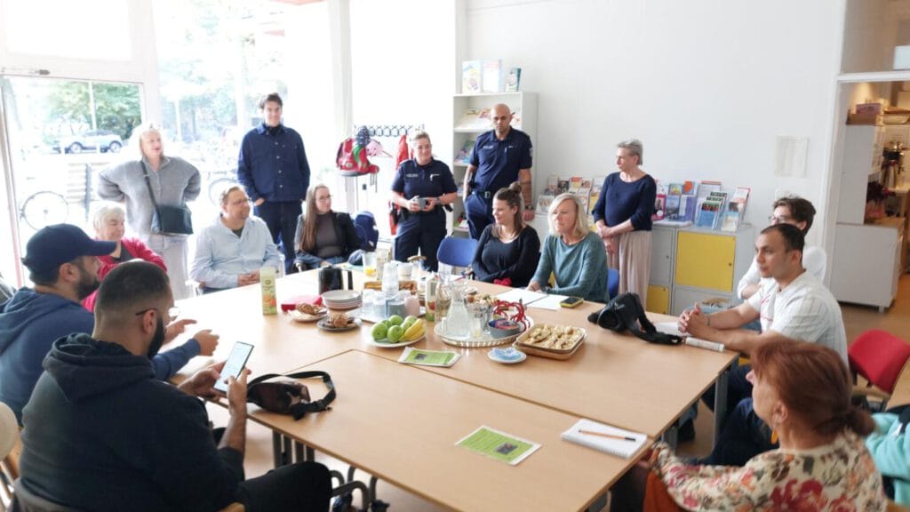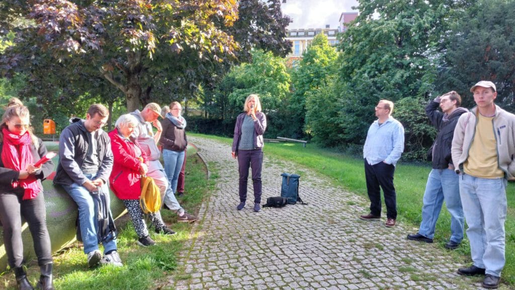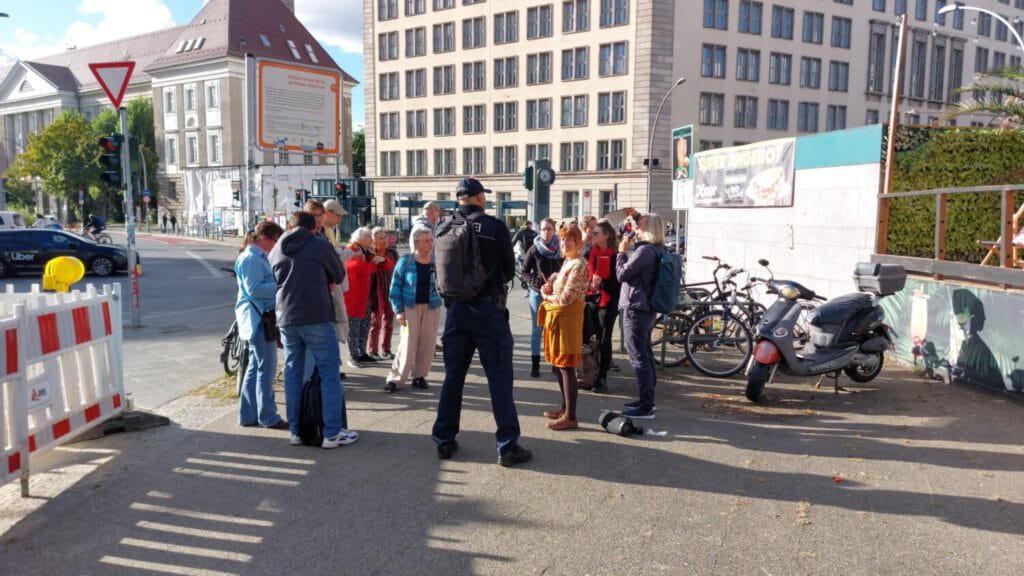 Am 23.09. fand ein spannender Kiezspaziergang mit 22 Teilnehmenden (Akteur*innen und Nachbar*innen) durch Schöneberg Nord statt – organisiert von der Stadtteilkoordination. Gemeinsam mit sozialen Einrichtungen, Suchthilfekoordination, Gewalt- und Kriminalitätsprävention, Polizei und Nachbar*innen haben wir Orte besucht, an denen es Herausforderungen, Bedarfe aber auch tolle Projekte und Ideen gibt.